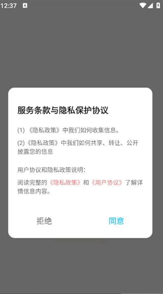 1、下载并安装APP,点击‘同意’,即可进入主页面;