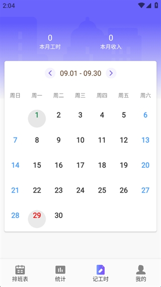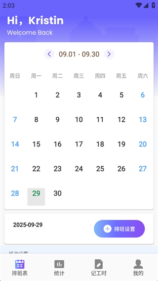 1、进入app就可以进行排班设置,直观查看自己的排班;