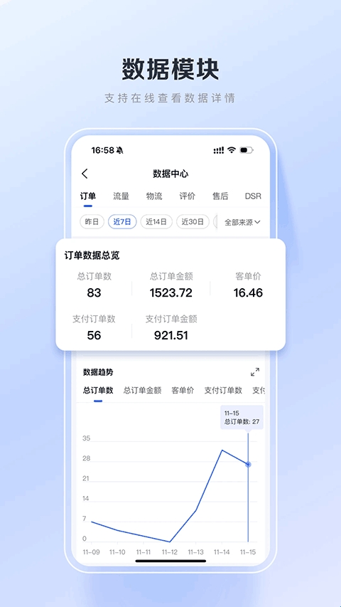 4、运营数据:实时查询运营数据,无论何时何地,都能掌控全局。