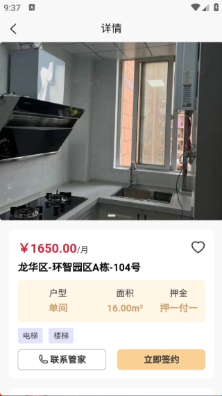 4、选中看中的那个房源,在这里可有详细的介绍,你可以进行联生活费管家,也可以选择立即签约等操作。