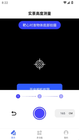 1、打开软件进入实景高度测量,这里需要将靶心对准物体底部才能拍摄。