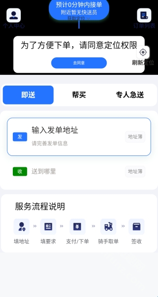 1、便捷下单:软件支持用户便捷下单配送,轻松呼叫骑手,进行多场景的配送下单。