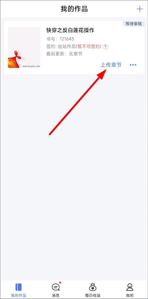 3、提交作品信息后进入审核,我的作品页面可查看创建的作品,点击作品下方的上传章节。