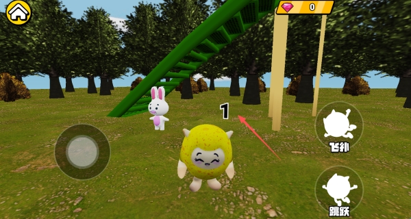 2、点击左侧的按钮可以控制角色移动,找到滑梯后,角色会自动滑下来。