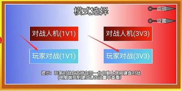 2、根据需求选择“1v1”或“3v3”;
