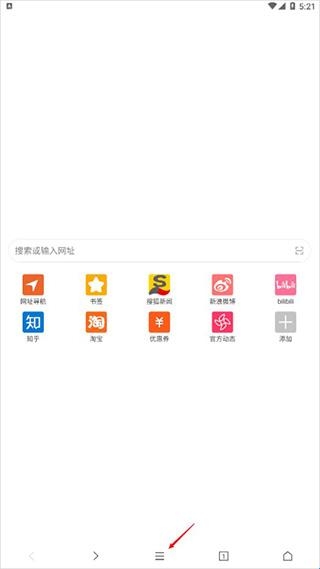 1、打开荟萃浏览器app,点击下方三条杠的图标;