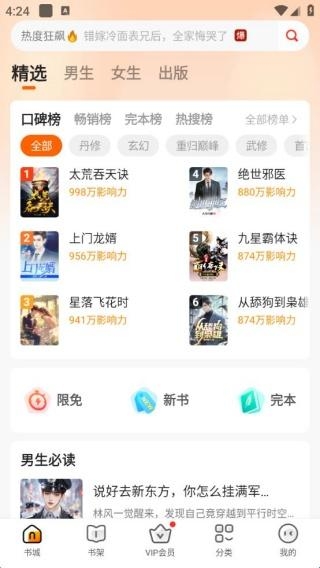 2、进入到书城界面,有丰富多样的小说资源免费提供。