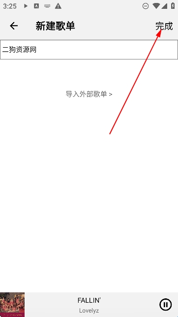 2、然后输入歌单名点击完成。