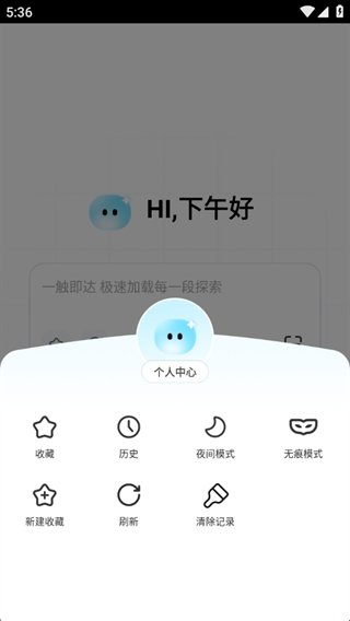 4、打开设置页可以查看历史,添加收藏,查看收藏夹,还能开启无痕模式。