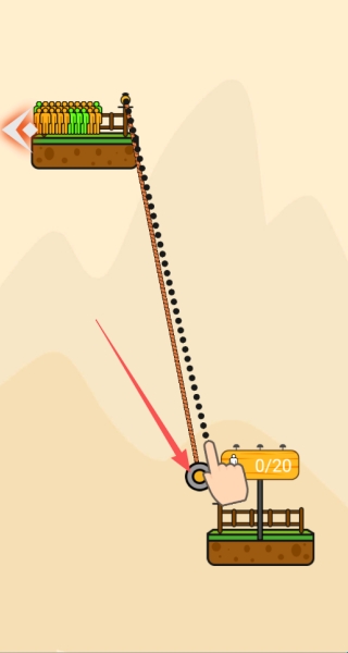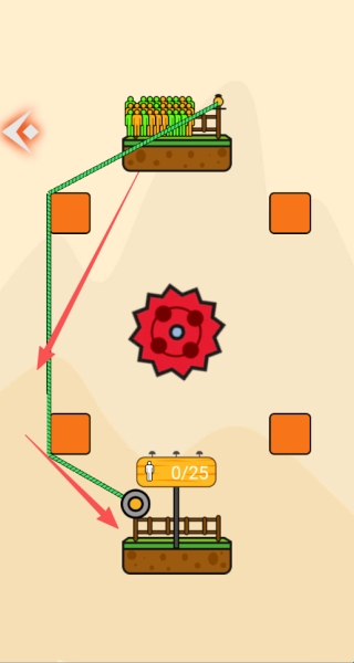 2、点击小人,让他们沿着绳索成功的移动到目标地点。