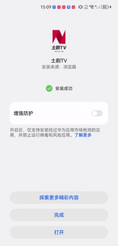 5、最终,出现绿色对号,说明“安装完成”,点击打开,即可体验。