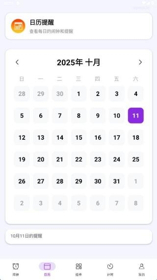 1、闹钟页面支持创建服务,结合你的时间安排,设置闹钟提醒。