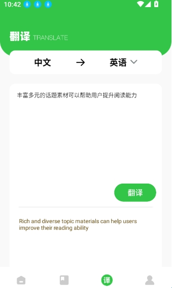 3、翻译功能:内置了强大的翻译功能,输入相关的语言就可一键翻译,实时翻译生词难句。
