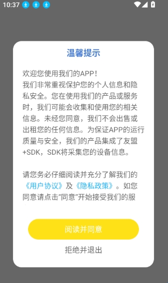 1、首先打开应用点击“阅读并同意”按钮来进入app中。