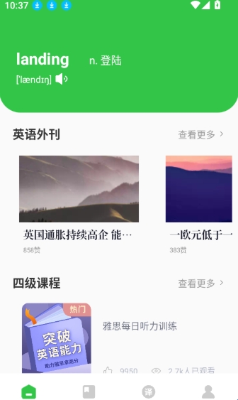 1、英语外刊:软件提供了英语外刊版块,选择外刊素材就可一键阅读,实时阅读相关的外刊资讯。