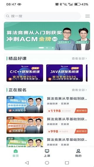 比特课堂能够让学生们更加高效且便捷的进行学习,比特课堂中含有众多优质的教学学习资源,并且您还可以根据您的需求去选择或搜索对应的课程,这里有着非常智能的教育学习方法,且有众多名师名导带领您一起走进学习的海洋,让您更加高效且自信的走在学习的旅途中,如果有对这款软件感兴趣的朋友,那就一定不要错过它,我相信它一定不会让您失望的。
