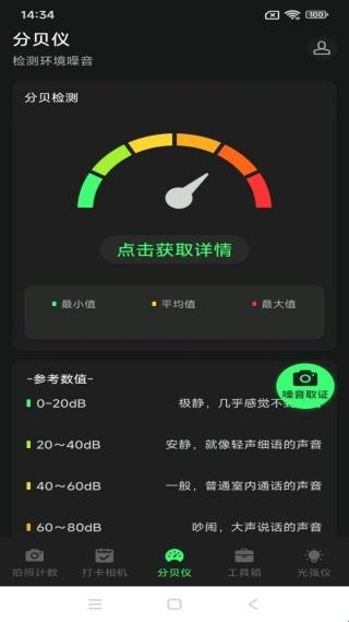 4、分贝仪测量功能,看看各种场合的分贝是多少吧。
