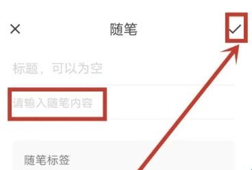 3、输入需要添加随笔的内容,设置便签,点击右上角打钩图标进行保存,完成小黄条便签使用