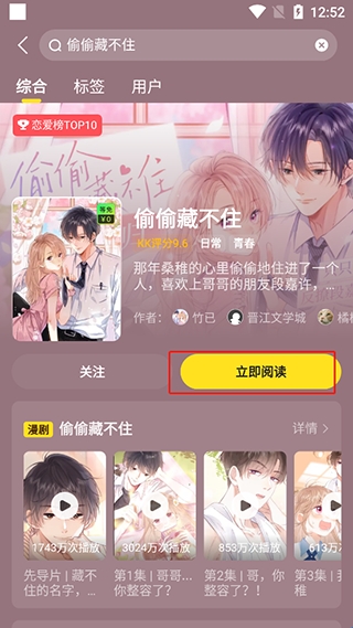 2、找到想看的漫画,选择“立即阅读”。