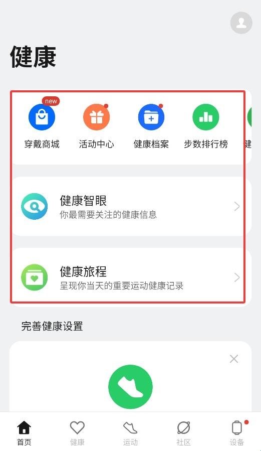 2、首页提供穿戴商城、活动中心及健康档案等功能入口,支持步数排名与健康监测。