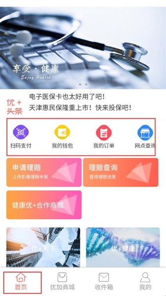 2、点击首页主页面,看到主页面的四个模块,可进行选择所需点击。