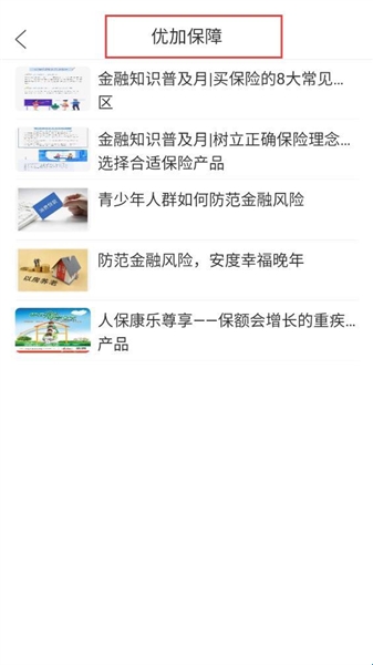3、点击优加保障,可以观看各个预防的风险内容,进行提前防护。