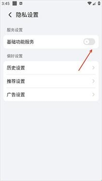 4、将基础功能服务关闭,将推荐设置也进行关闭