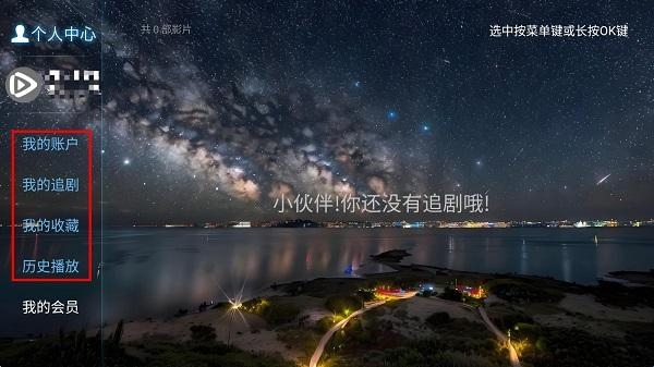 4、在个人中心,可以查看加入收藏的影片,还能根据播放历史接着上次的时间点继续观看