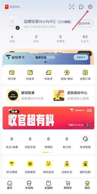 2、进入【我的】页面后,找到右上角的【设置】图标并点击,即可进入设置功能页面。