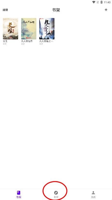 1、打开知书APP,进入书架界面,点击底部“发现”,切换到发现界面