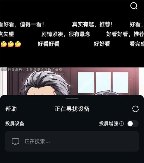 3、进入正在寻找投屏设备页面,找到自己需要投屏的设备,等待设备连接成功后就可以了(需要将手机与电视/盒子连接至同一个Wi-Fi)。