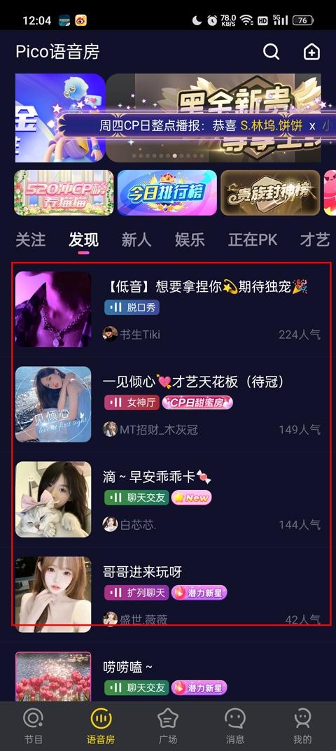 5、然后是语音房,选择进入你想进入的语音房;