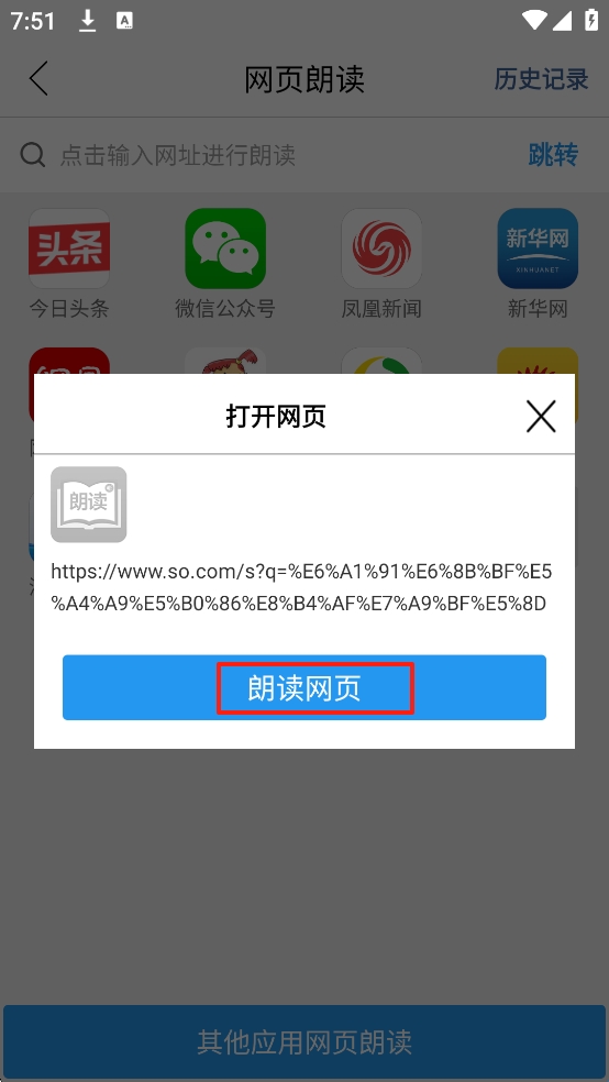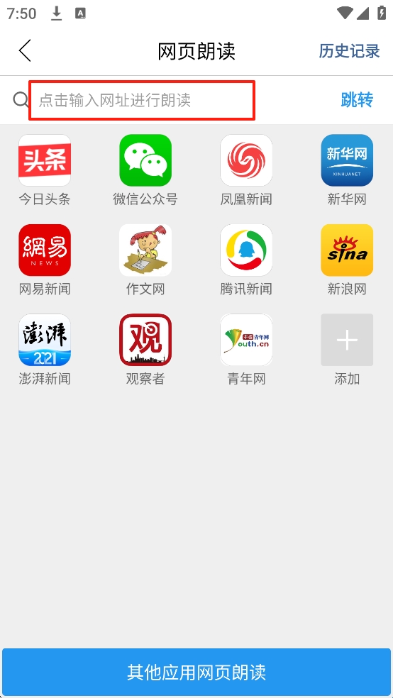 2、以【网页朗读】为例,输入网址进行跳转