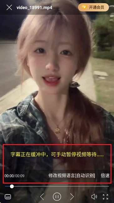 然后就能看到字幕正在缓冲中的提示字样。