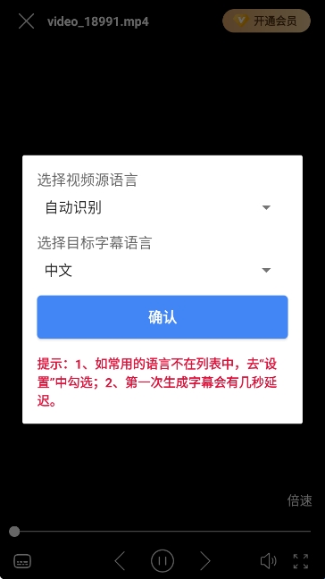 提示:1、如常用的语言不在列表中,去”设置"中勾选;2、第一次生成字幕会有几秒延迟。