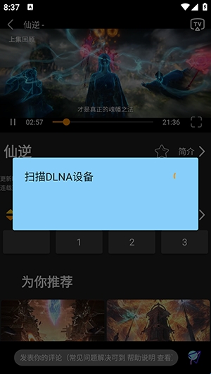 4、在播放界面点击右上角的TV图标可以搜索投屏设备进行投屏。