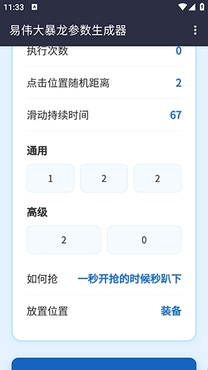放置位置调节:灵活调整点击/滑动的屏幕坐标,适配不同App的UI布局,实现“指哪打哪”的精准定位。
