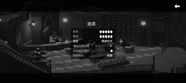 游戏采用独特的黑白艺术风格,营造出压抑而紧张的氛围,使玩家沉浸在黑暗世界中。