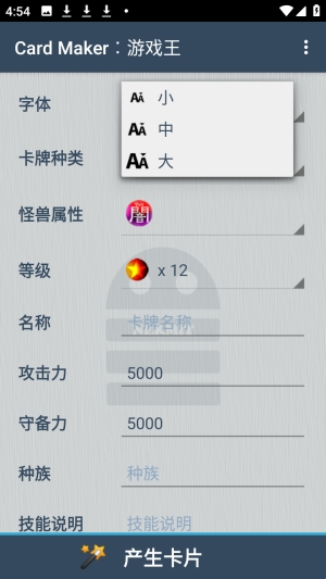 3、为卡牌设计名字以及技能等信息后点击产生卡片。