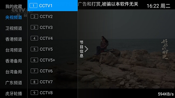 2、手机端用户需要点击左侧屏幕可以唤起电视频道列表,选择想看的频道即可快速播放。