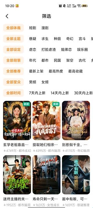 2、点击分类选项可以筛选感兴趣的短剧内容。