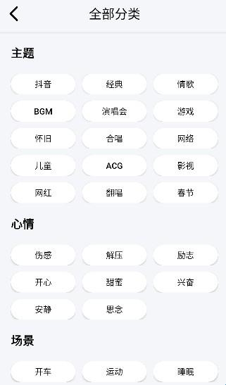 3、选择喜欢的分类后可以获得大波同类型的音乐;