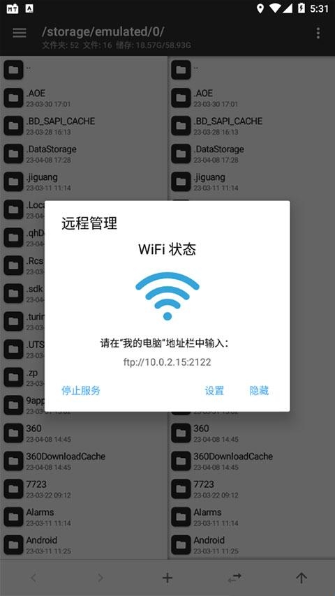 4、在我的电脑地址栏中输入下面的ip地址就能够进行管理手机的文件了。