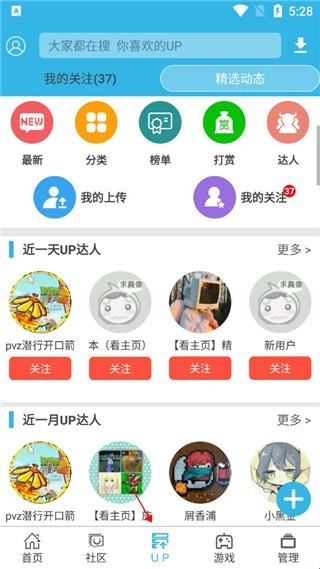 4、然后在UP的首页就可以看到他上传的游戏资源,大家可以自由下载体验游戏的乐趣。