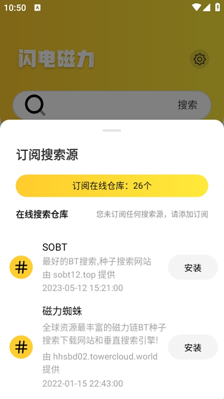 1、在本站内下载安装并打开软件,点击首页底部的“订阅”选项,添加搜索源。