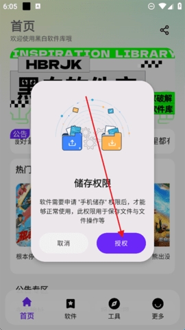 1、下载黑白软件库进入之后点击授权