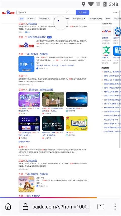1、 首先我们下载安装好火狐浏览器,然后打开软件在搜索处搜索自己的需求,这里以百度为例;