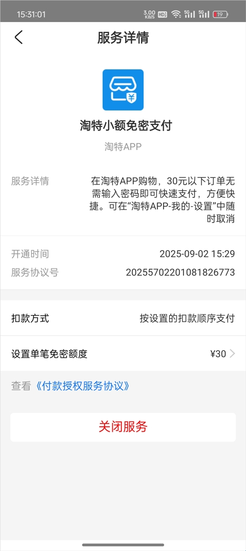 5、最后将免密支付功能关闭即可