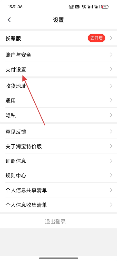 3、在设置页面选择支付设置