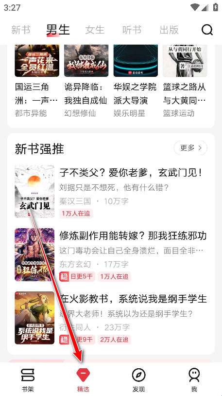 6、返回,点击下方的精选,可以看到这里有分类超级详细的小说板块内容。